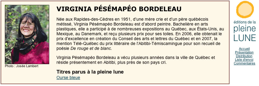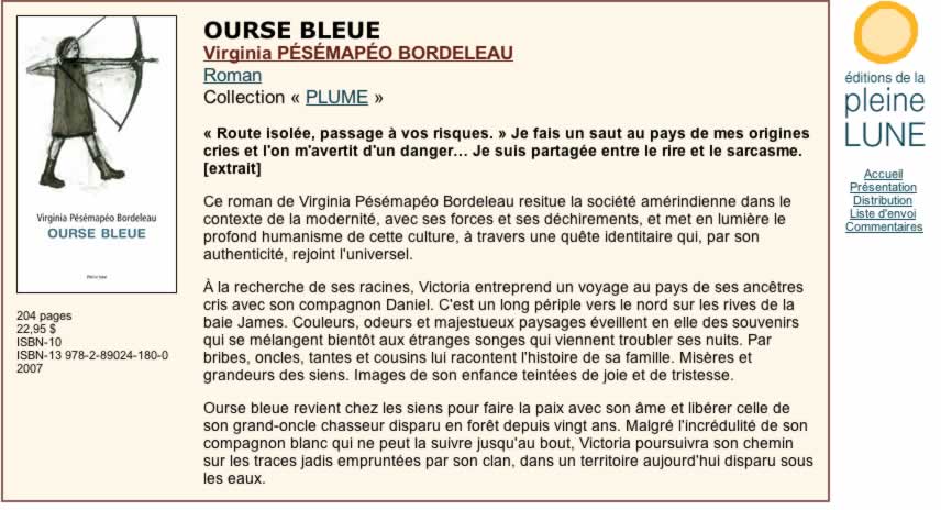 Il y a bien quelques longueurs, quelques détails superflus. Le récit a parfois tendance à s'enliser. Et des bizarreries syntaxiques font tiquer ici et là. Mais Virginia Pésémapéo Bordeleau parvient dans l'ensemble à trouver le ton juste.